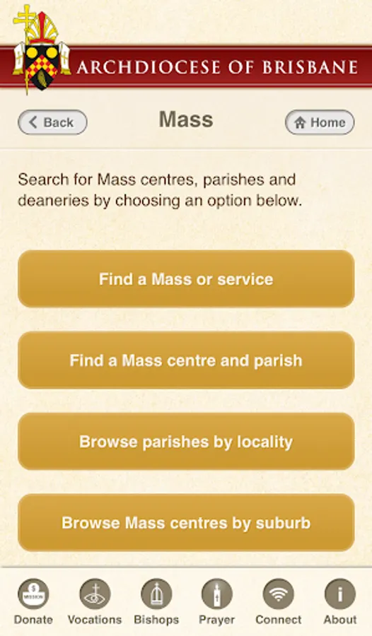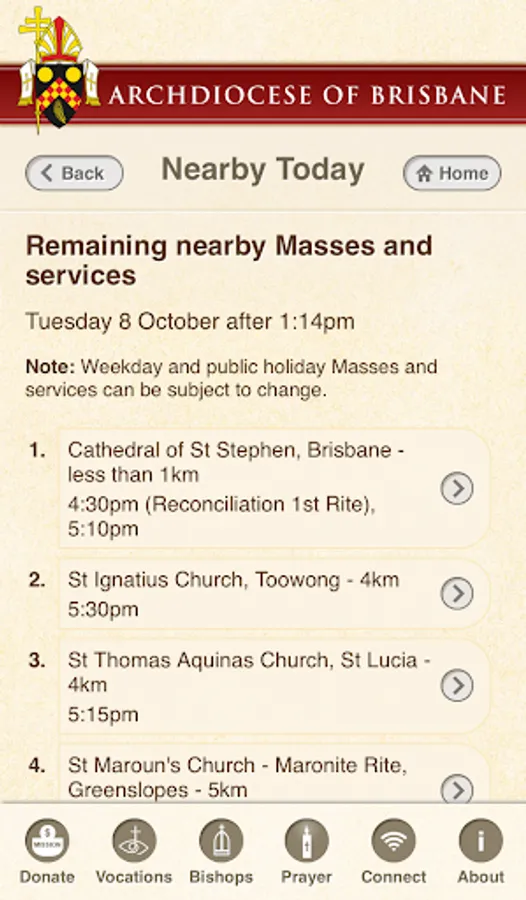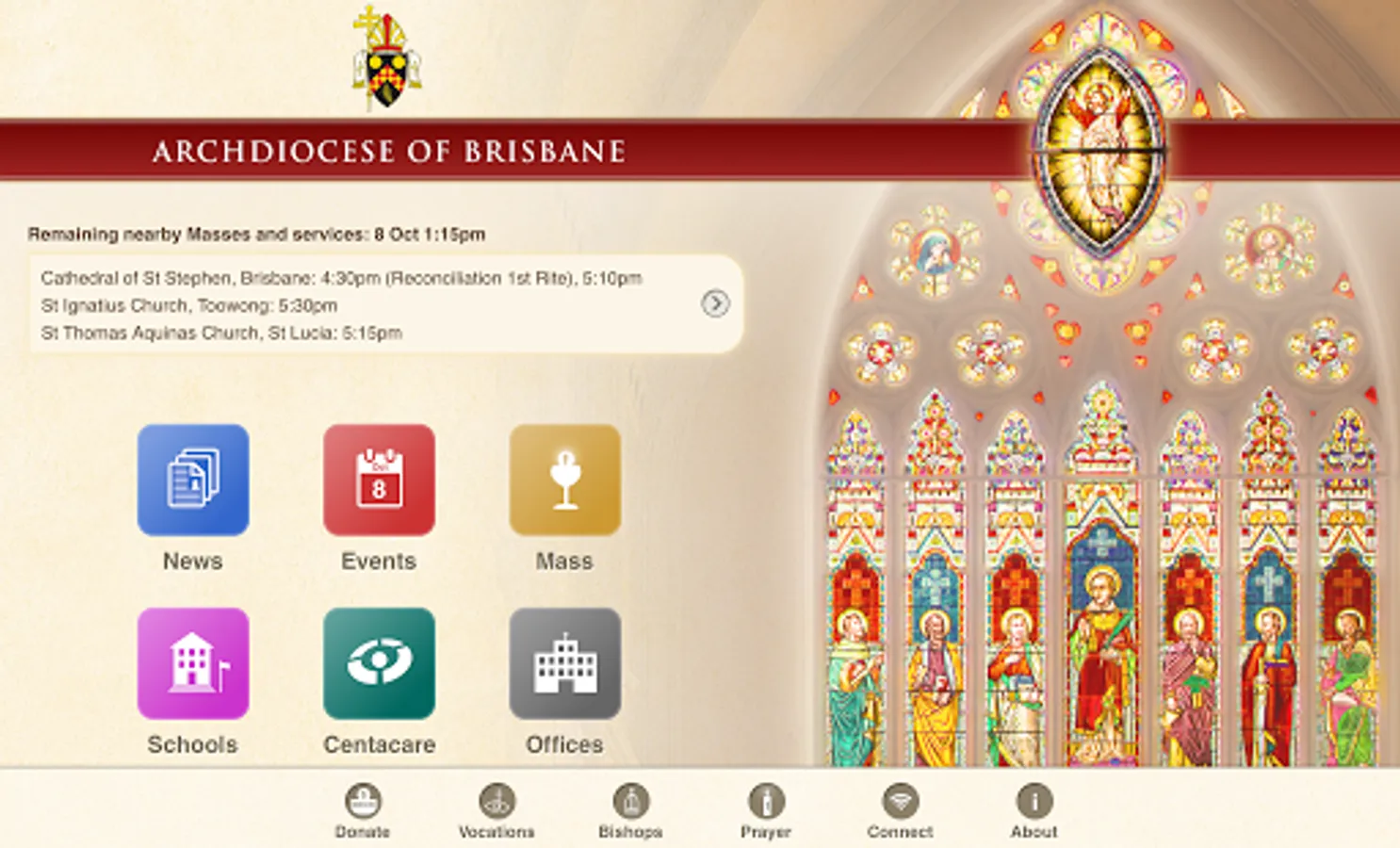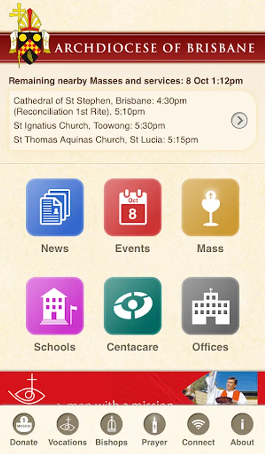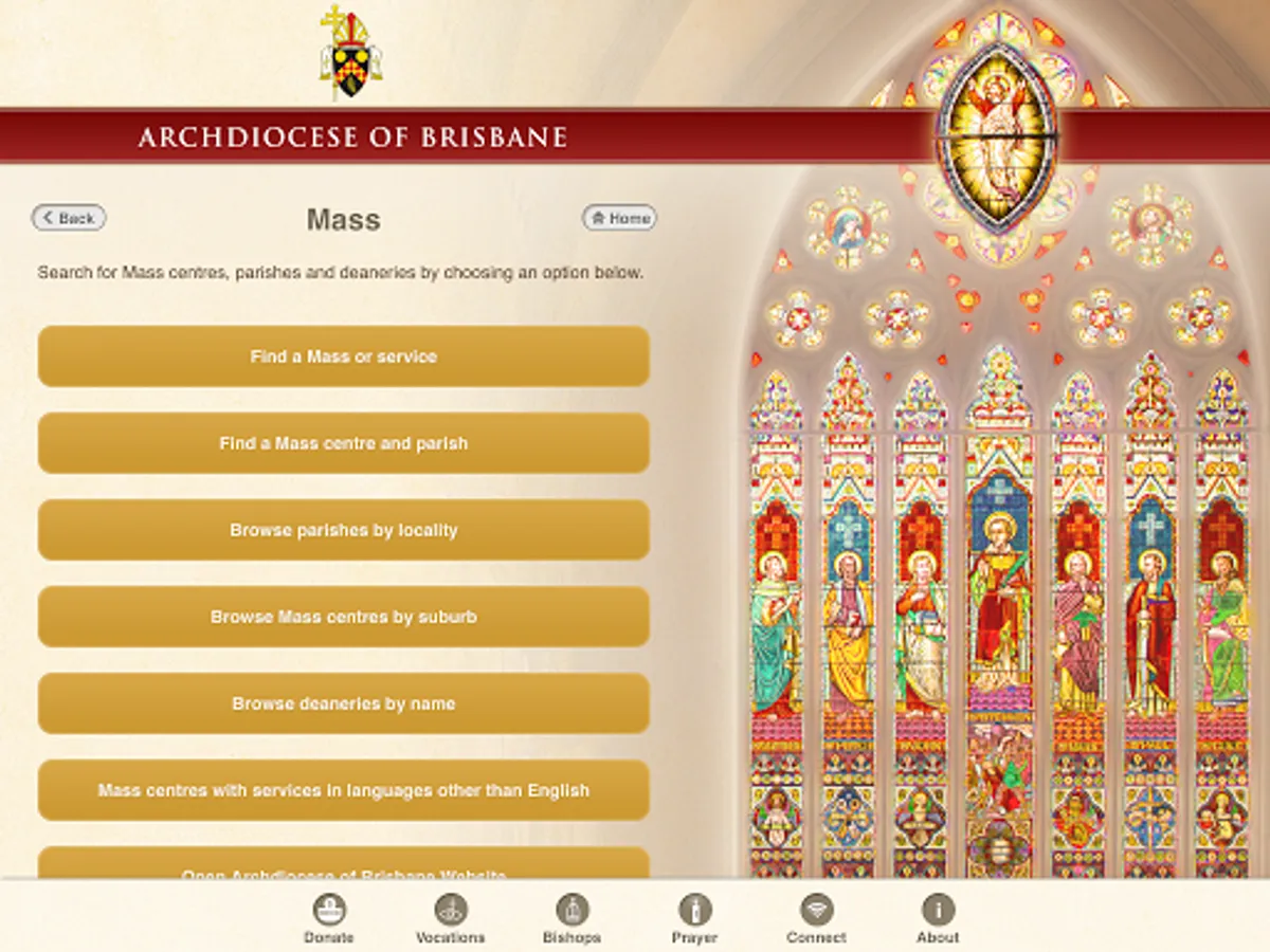 The Archdiocese of Brisbane app allows you to find: