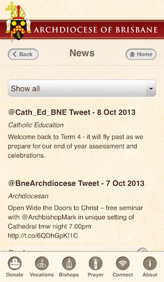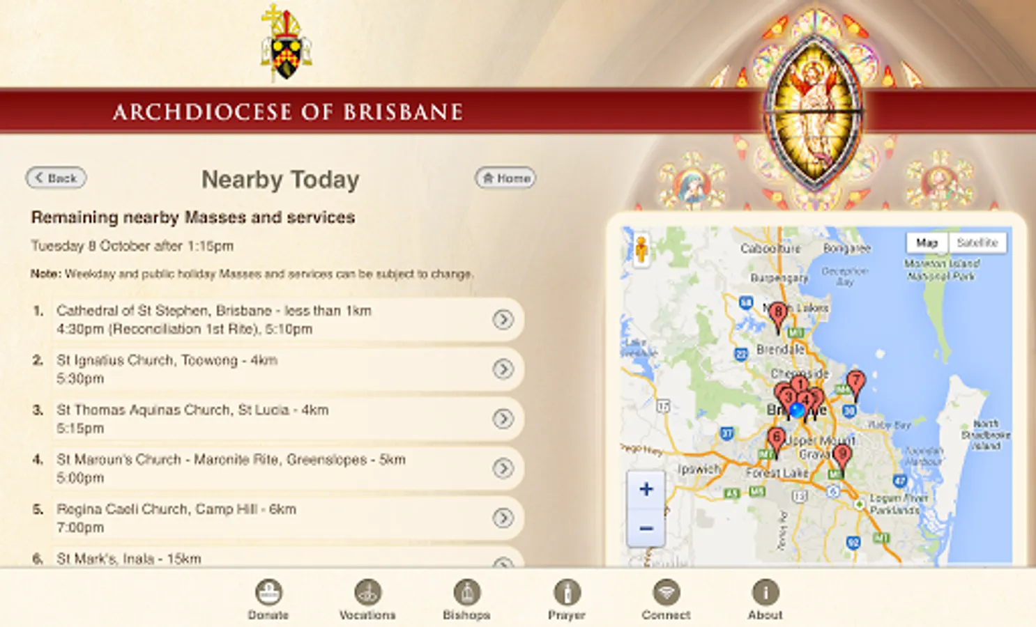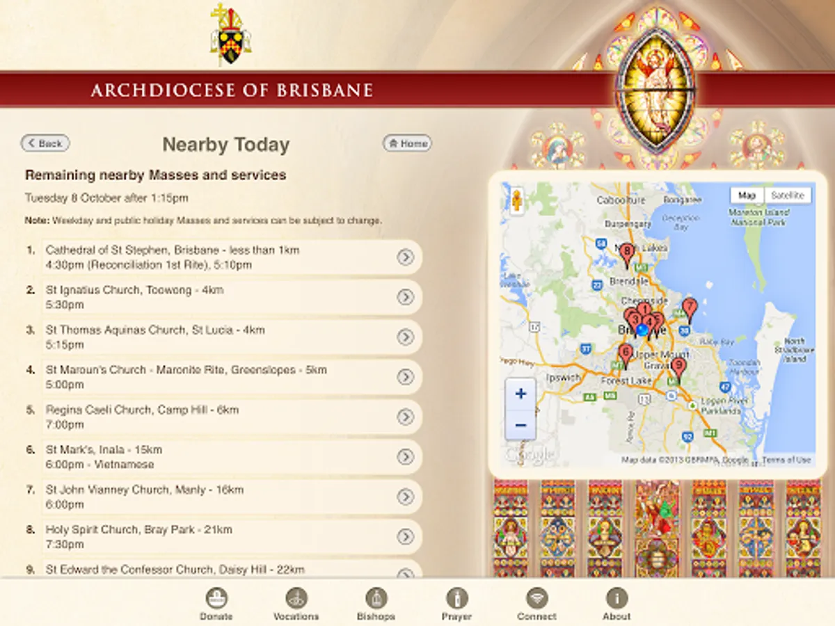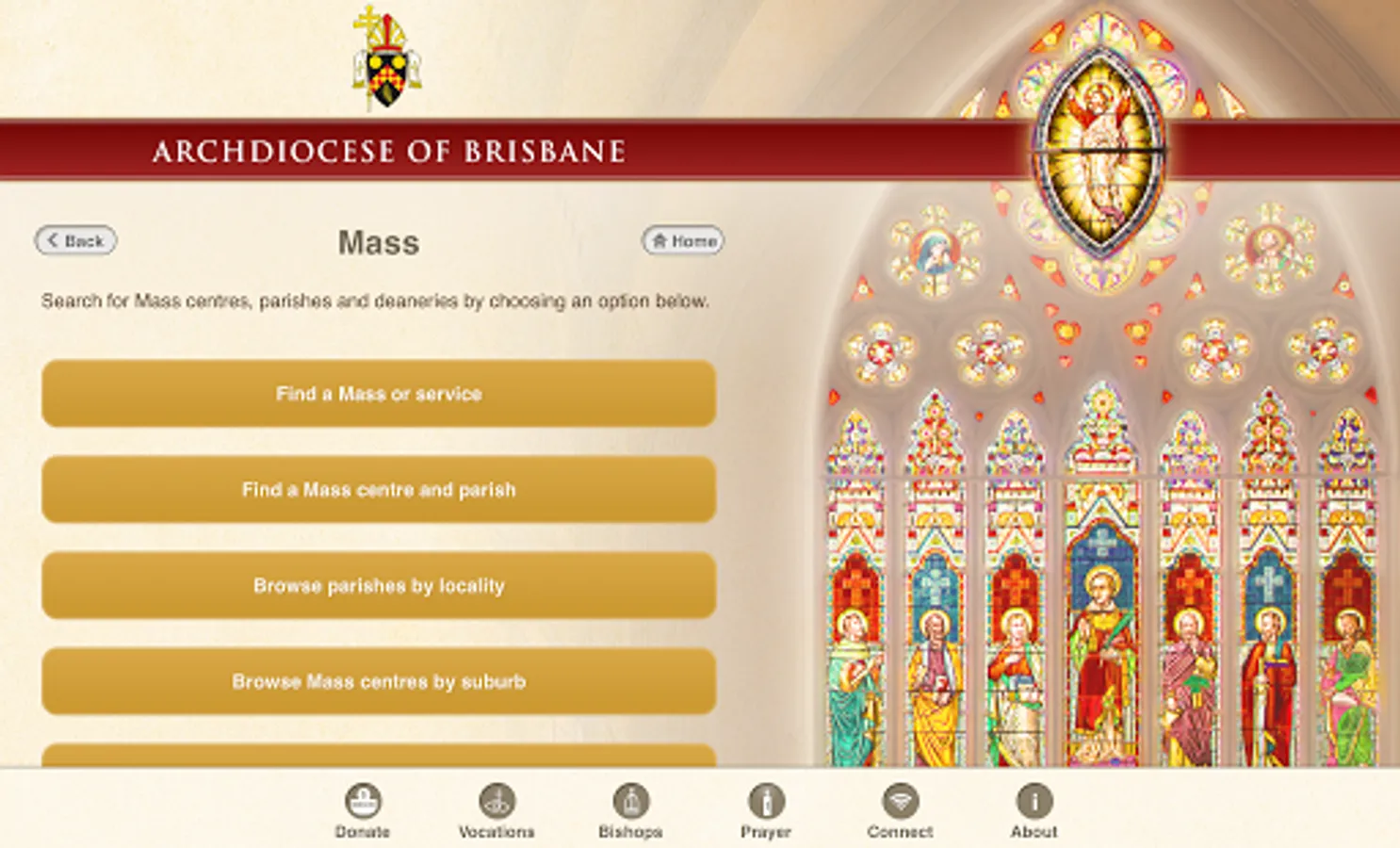The Archdiocese of Brisbane app allows you to find: