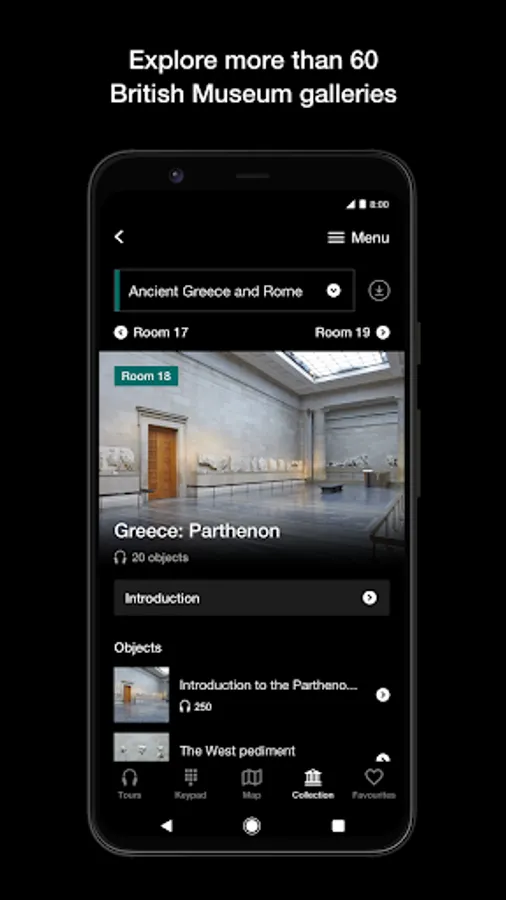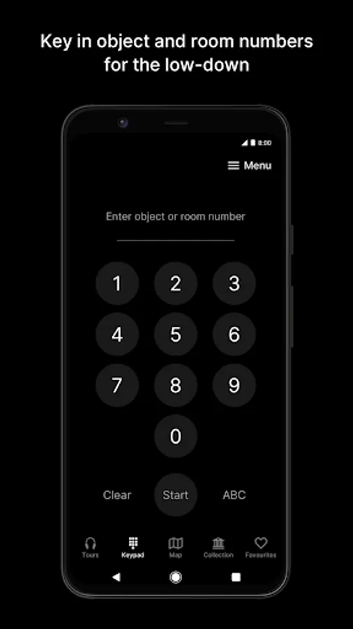 The Audio app covers 250 objects in the permanent galleries – when you see the audio guide symbol on cases or next to objects, enter the number using the keypad on the app for audio commentaries and other information.