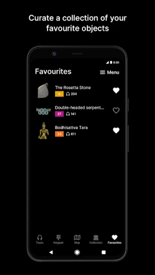 Create your own list of favourite British Museum objects by adding objects to the Favourites page as you explore the Museum on the app.