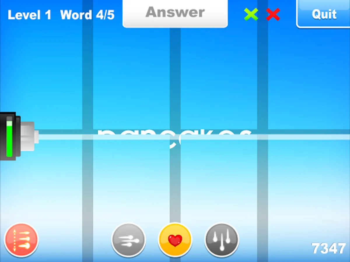 Amazingly, at the same time, you will become a better speller, as you vanquish words that are not just right-side-up, but once you get to Level 4, upside-down, backwards, plus both upside-down and backwards! You had better earn and save your power-ups, since you’re sure to need them.