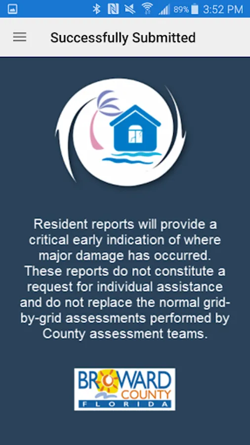 In the aftermath of a hurricane or other natural disaster in Broward County, residents and property owners can enter their address and describe the damage to their property. The application also allows you to categorize the damage level and upload up to four (4) images. All reported information is collected by the Broward County Emergency Operation Center (EOC).