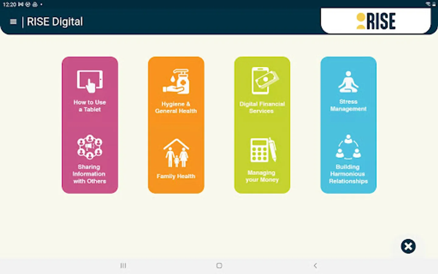 RISE Digital is an app which uses games, animations, and quizzes to provide critical information to vulnerable women workers in global supply chains, including information on health, financial resilience, stress management and communication.