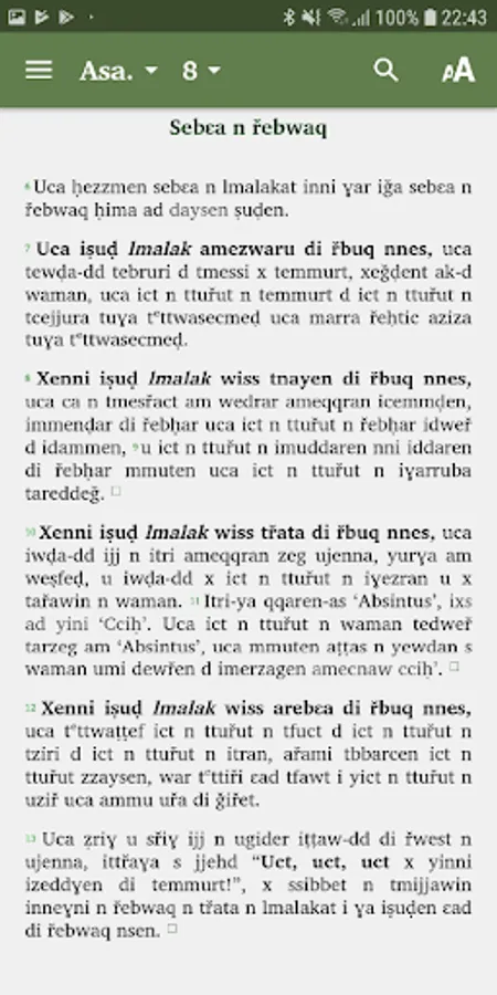 The complete Bible in Tarifit, with audio (more audio files will become available in the course of time) containing the complete Old Testament & New Testament. The translation is thoroughly based on the original languages of the Bible: Hebrew, Aramaic and Greek. For the New Testament we have followed to a great extent the text of the Aramaic Peshitta, which is basically the same as the Greek editions of the New Testament, but has the Aramaic variant 'Mar-Yah' of the Hebrew Name of the LORD 'YaHWeH'.