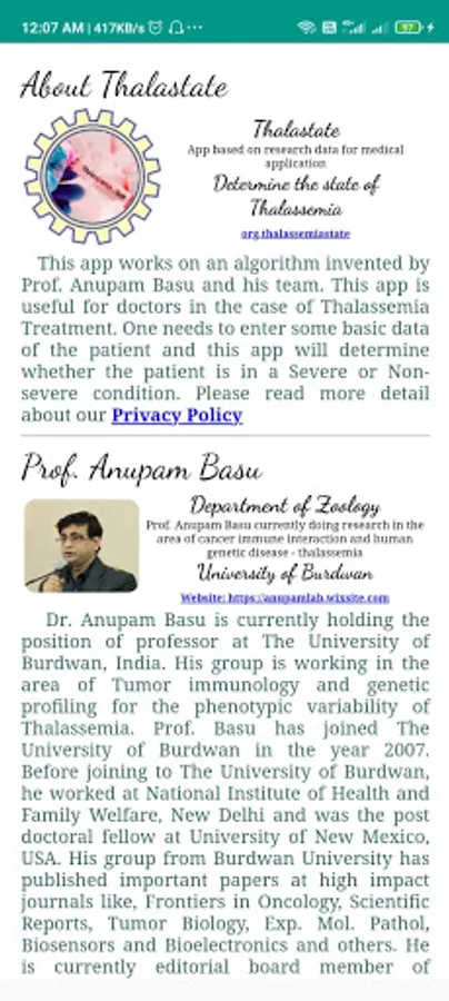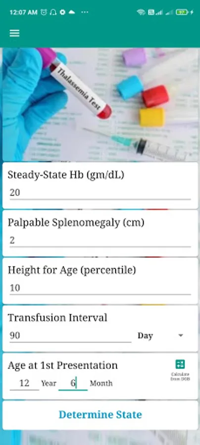 This app works on an algorithm invented by Prof. Anupam Basu and his team. This app is useful for doctors in the case of Thalassemia Treatment. One needs to enter some basic data of the patient and this app will determine whether the patient is in a Severe or Non-severe condition.