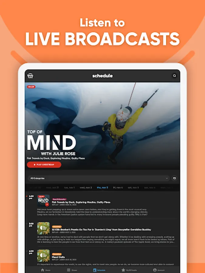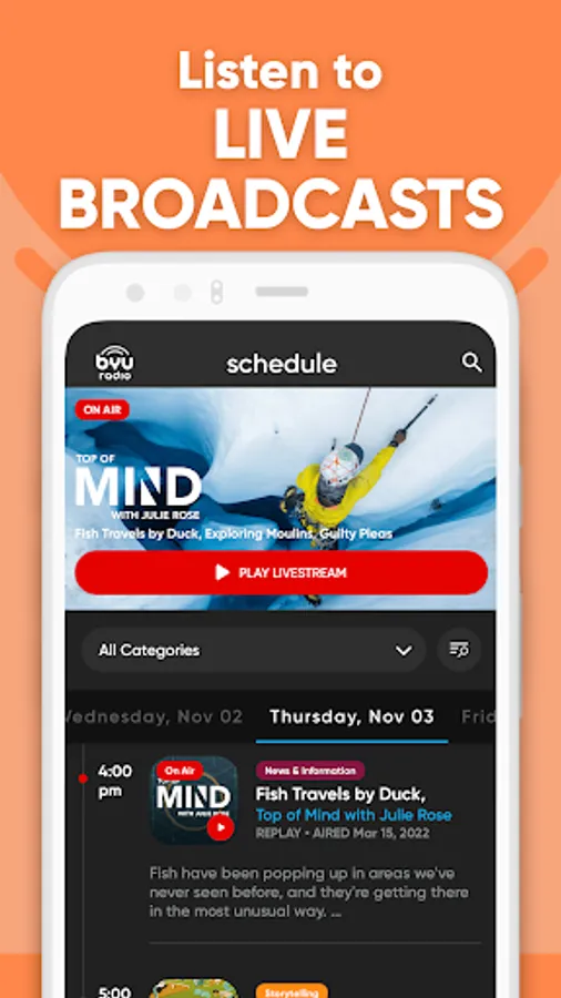 - Listen to audio on demand for original BYUradio shows and uplifting podcasts.