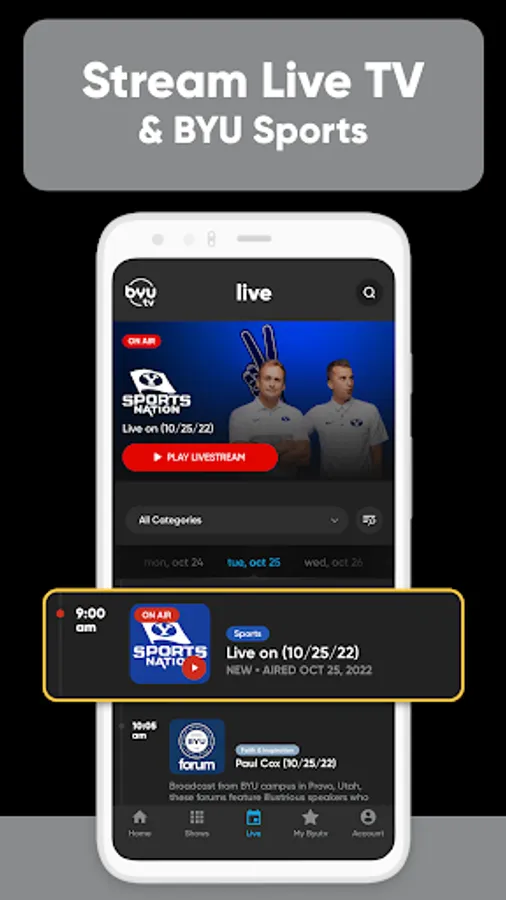 Watch TV shows, live stream sports, and discover movies the entire family will love with BYUtv. Live and on demand TV is just a few taps away. Download BYUtv today to start watching your favorite content!