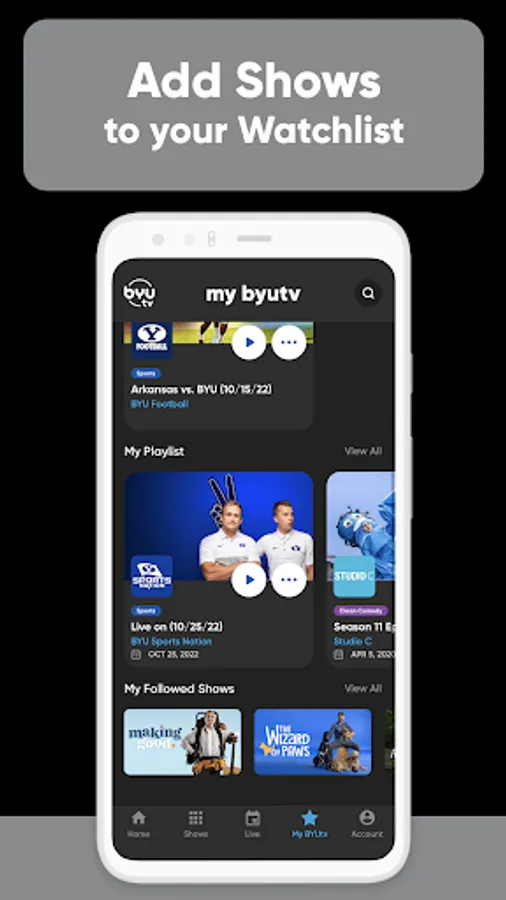 - Get custom notifications for your favorite TV shows, events, and BYU sports programming