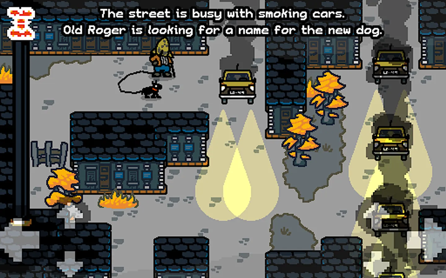 Old Roger is walking his dog while trying not to explode. Explore the city, avoid cars on the streets, and fight the butcher for a salami!