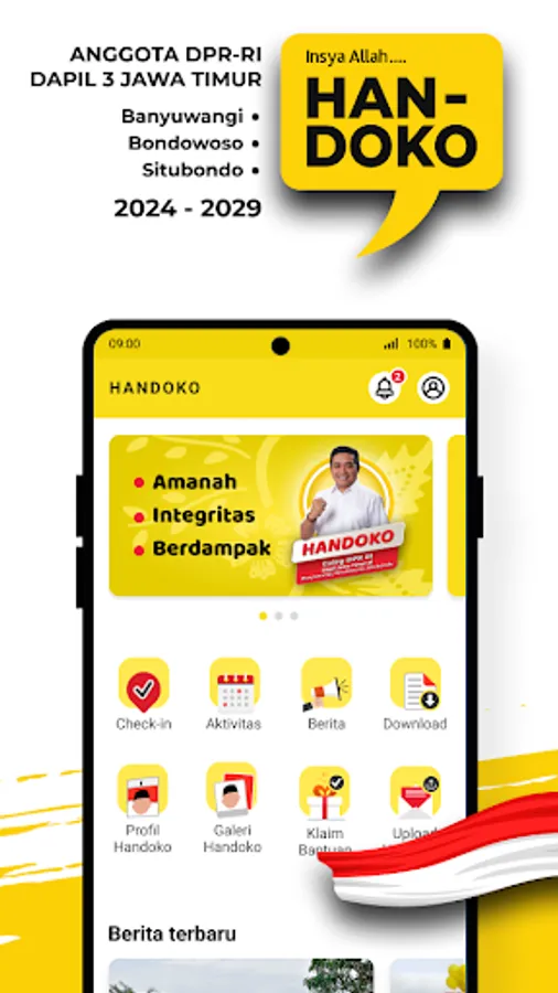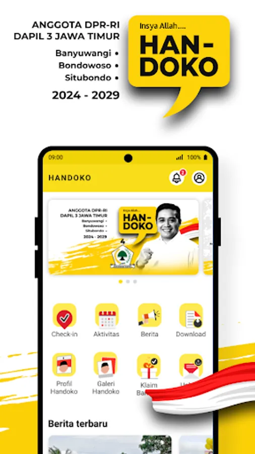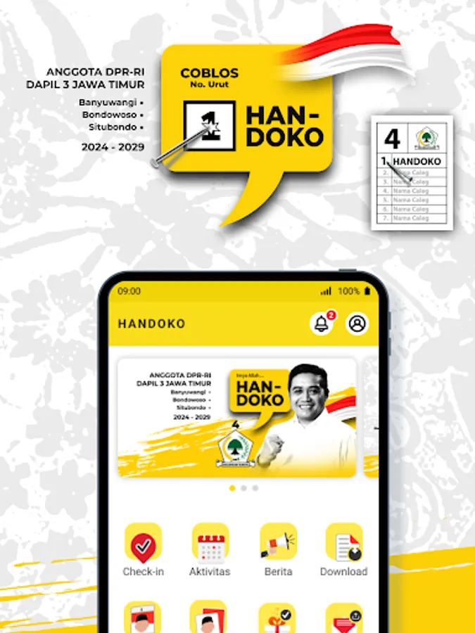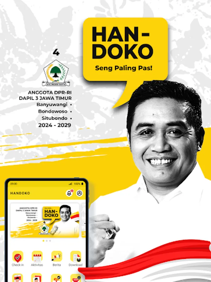 The application supports Handoko as a member of the DPR RI for the GOLKAR Party Dapil East Java-3 (Banyuwangi, Situbondo, Bondowoso).