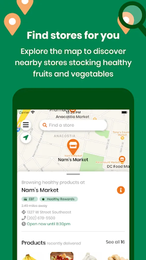 Healthy Corners Rewards connects you with dozens of corner stores all over Washington DC, making it easy and rewarding to find fresh and healthy food at discount prices.