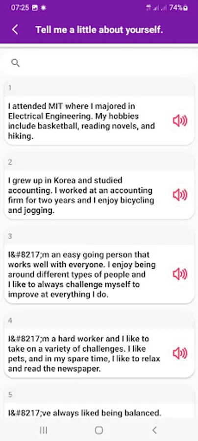 Use the audio files to listen to a native English speaker and improve your interview skills while improving your English speaking.