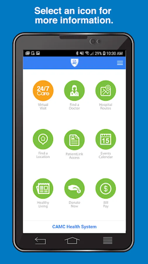 CAMC GO is Charleston Area Medical Center’s mobile app for patients and visitors. CAMC GO gives you quick and convenient access to information about doctors and services and helps you find directions to CAMC locations.