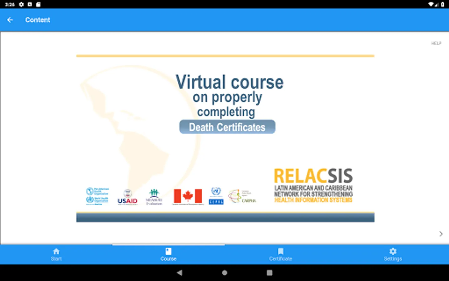 This app is the first-of-its-kind. The content was developed by the Pan American Health Organization/World Health Organization, through the Latin American and Caribbean Network for Strengthening Health Information Systems (RELACSIS) with the technical support of the Collaborating Centers for the WHO Family of International Classifications in Mexico (CEMECE) and Argentina (CACE) and the Ministry of Public Health of Uruguay.