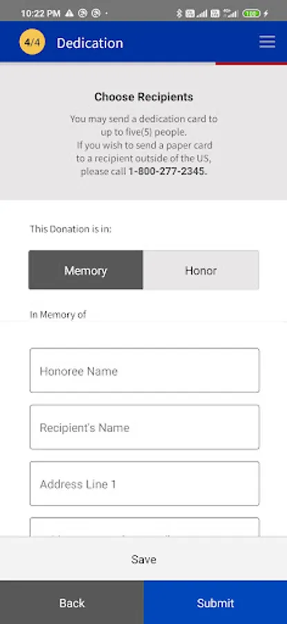 Add up to 5 dedications (honors or memorials) per donation for printing and mailing.