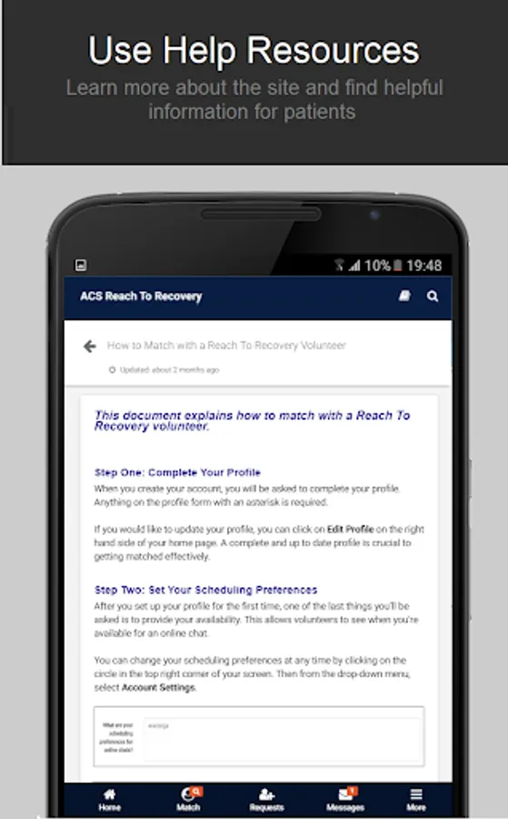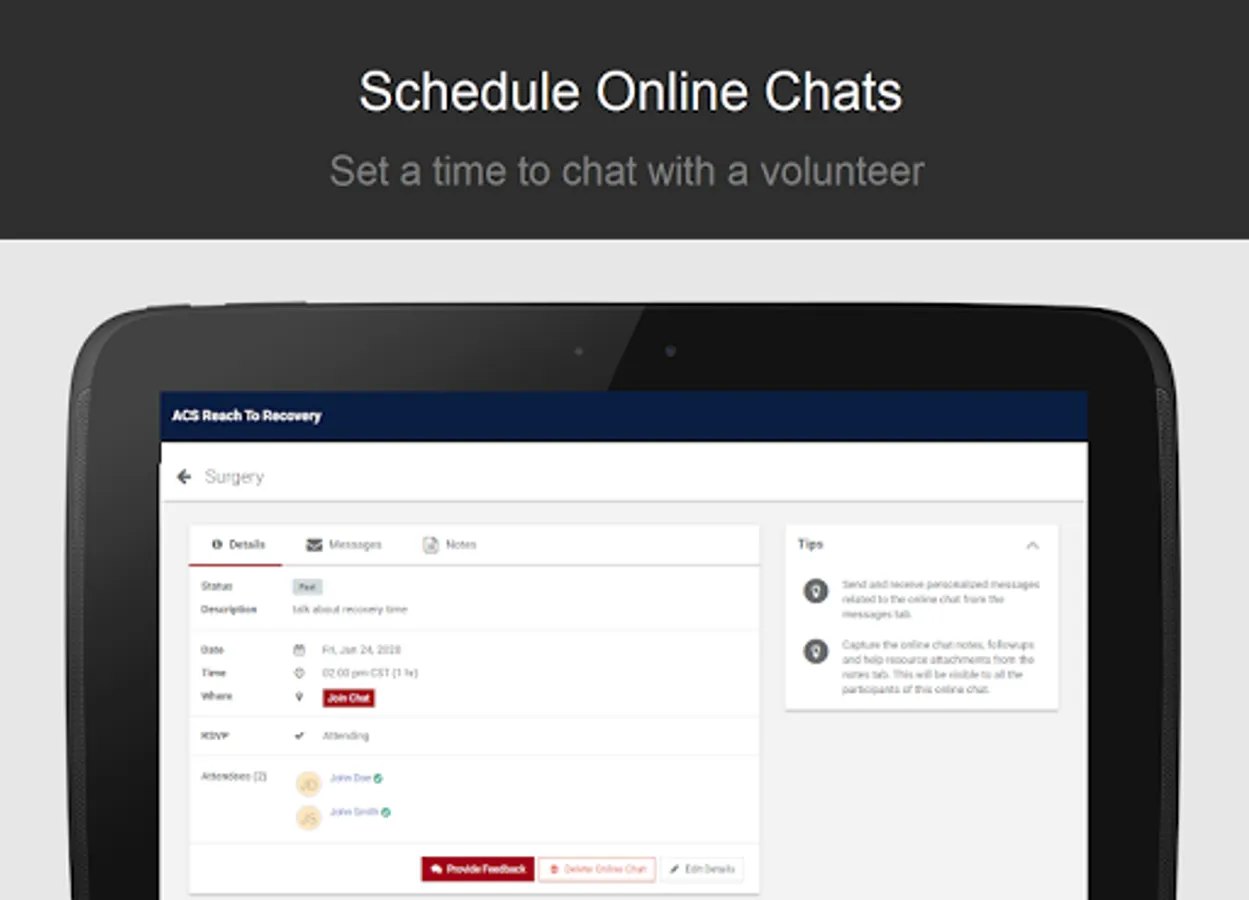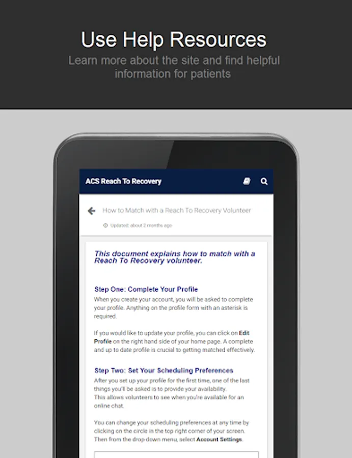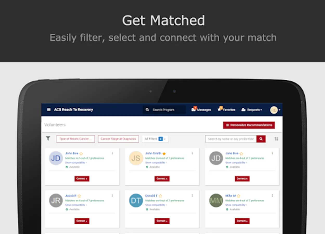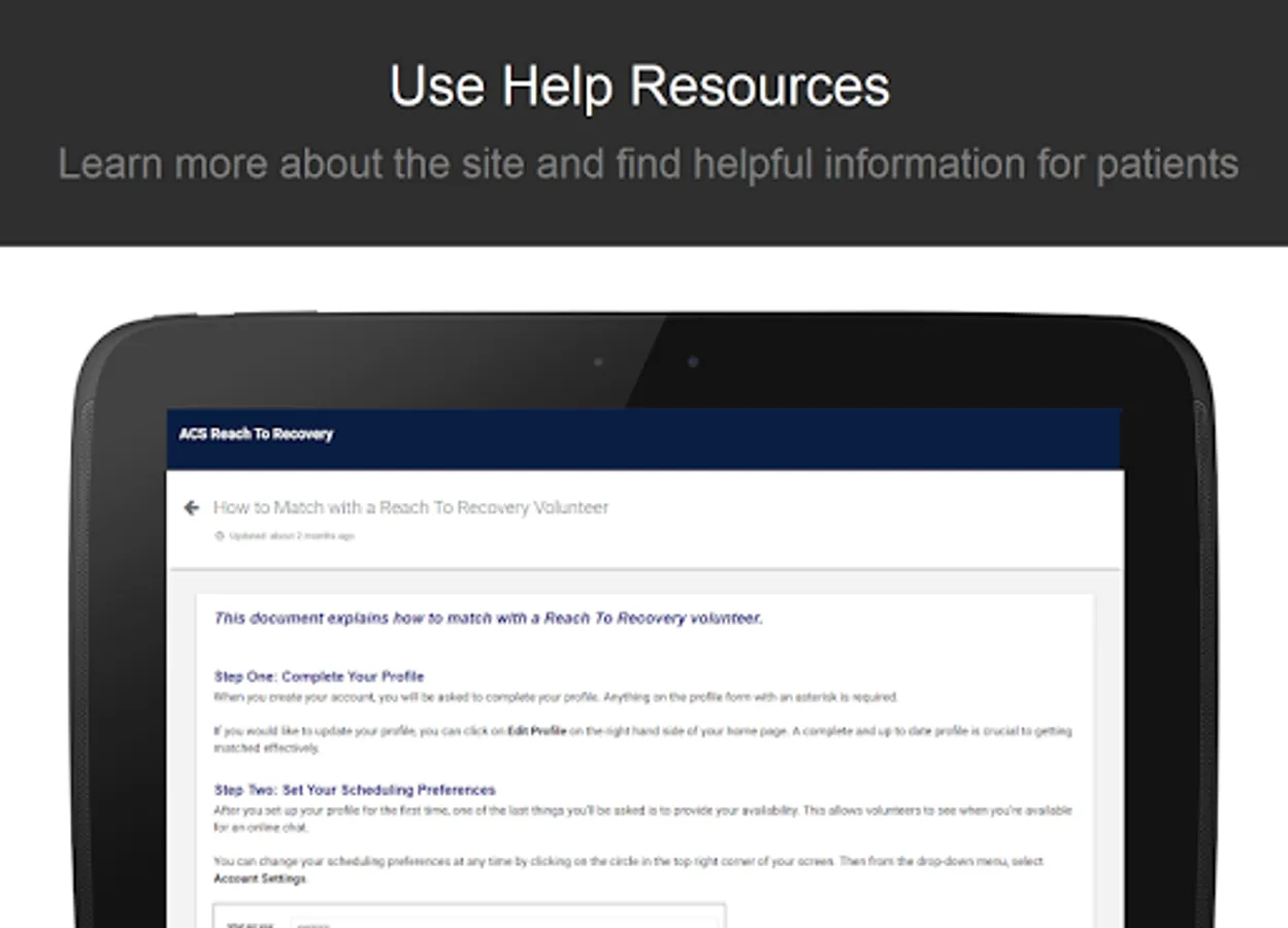 If you have breast cancer, you may want to connect with someone who has “been there.” Through the American Cancer Society Reach To Recovery mobile app, you can match with a breast cancer survivor and have an online chat.