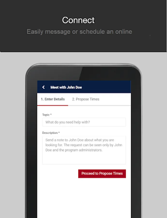 After reviewing volunteer profiles, peers can send an online chat request to one or more volunteers. The volunteers can accept, decline, or propose a new time for the online chat. Volunteers typically respond within 24 hours, although it may occasionally take longer.