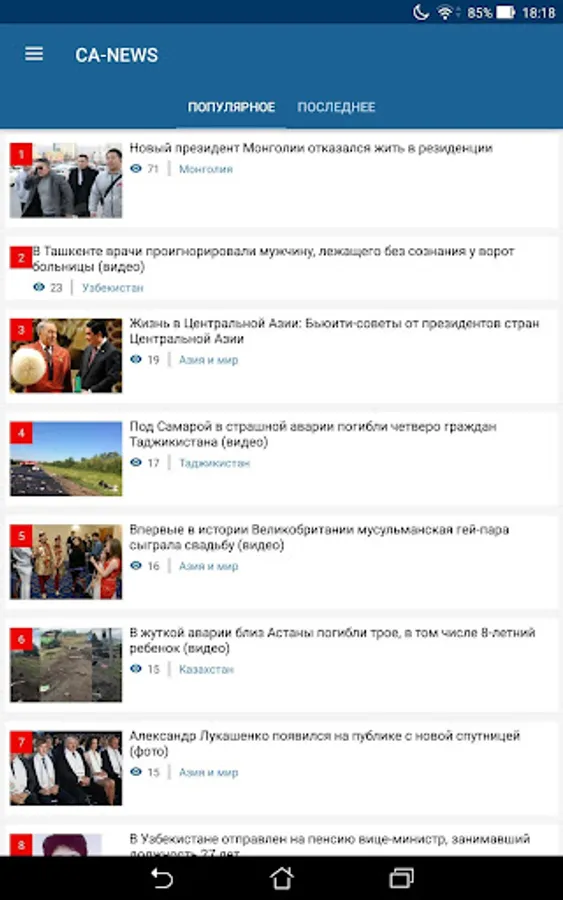 CA-NEWS - it's the latest news Central Asia about the money, the prices in the markets, political games, diplomacy and relations of countries, migrants, the lives of women and men, weather and more.