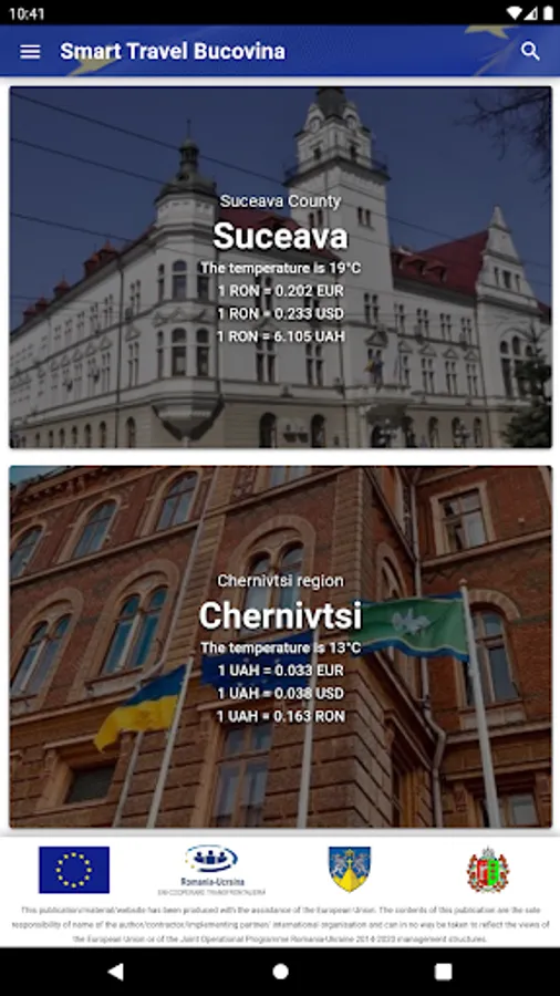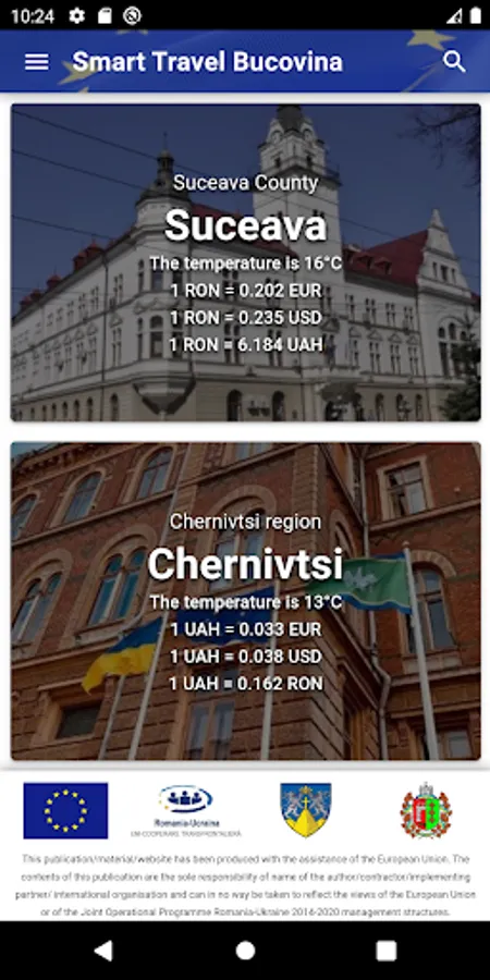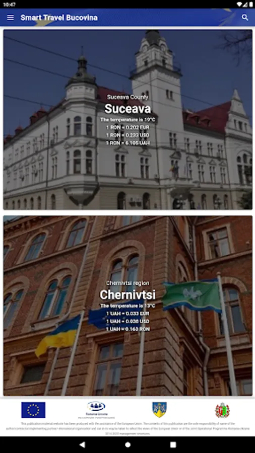 The Smart Travel application aims to provide useful information and promote culture and tourism for Suceava County and the Chernivtsi region. Planning a trip to Bucovina should be easy and fun using Smart Travel. It's free and can be used offline to avoid high roaming charges.