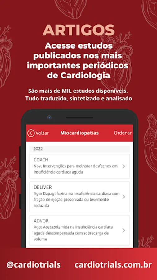 - Articles: our library has more than THOUSAND clinical trials published in the largest cardiology journals in the world. All synthesized and translated into Portuguese.