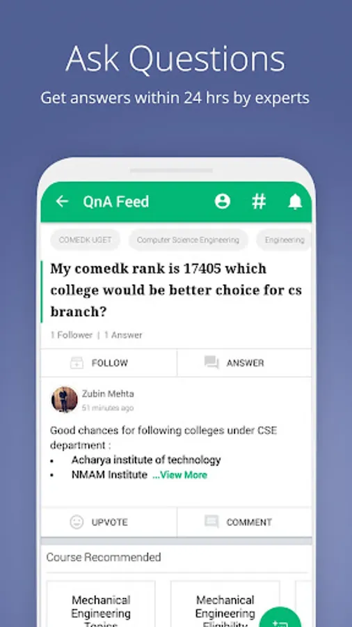 ● Information about popular courses like B.Tech, MBA, MBBS, BBA, BCA, etc. along with details about placements, fees structure, admission process, seats, reviews, cut offs, and more