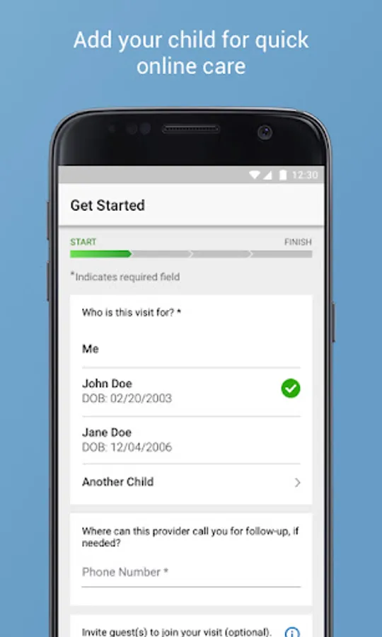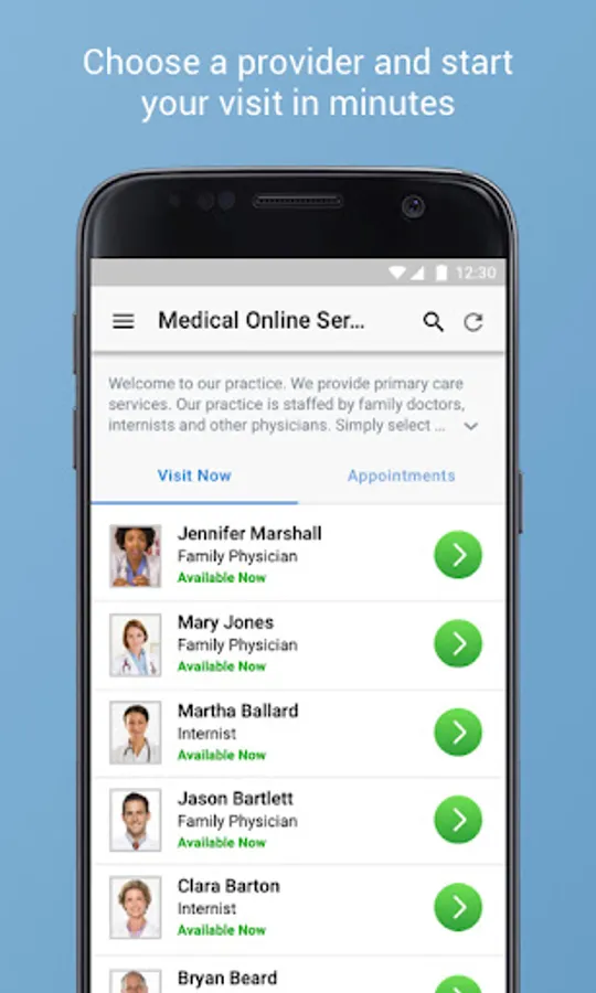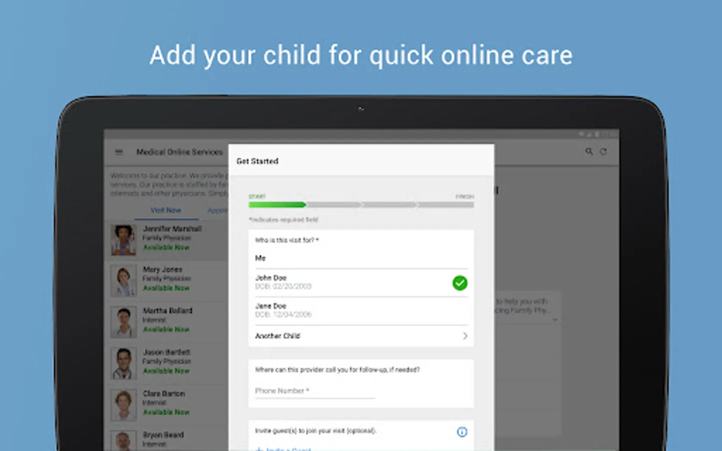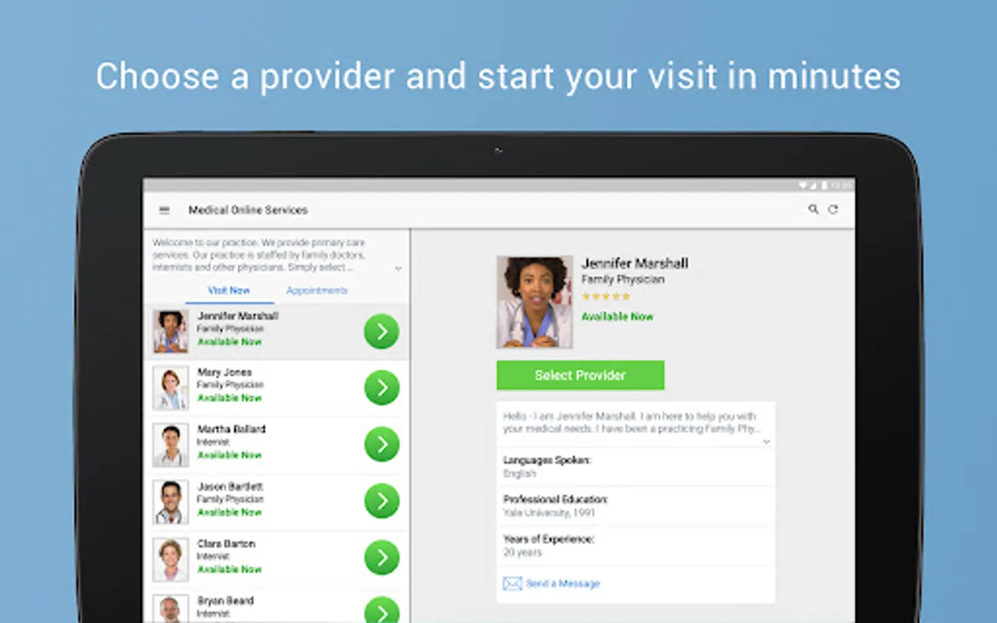 Feel better faster. To get started, simply download the free app, select the visit type and choose your provider.