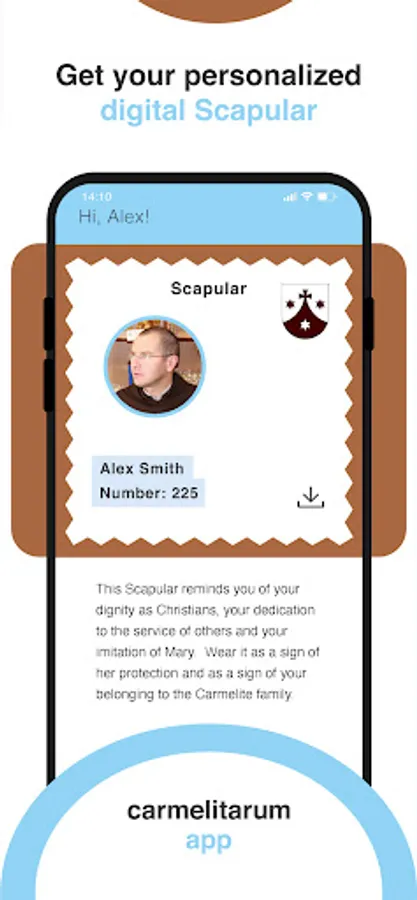 - You can download your digital scapular representation on your mobile phone and share it with others.