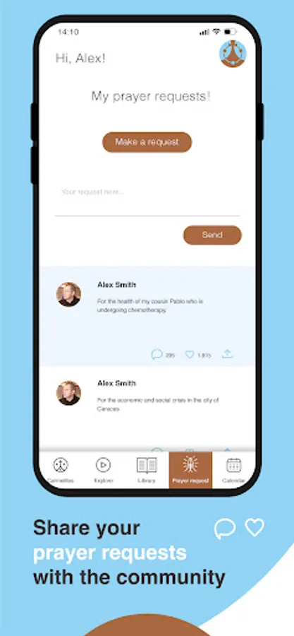 - Share your prayer requests with other users.