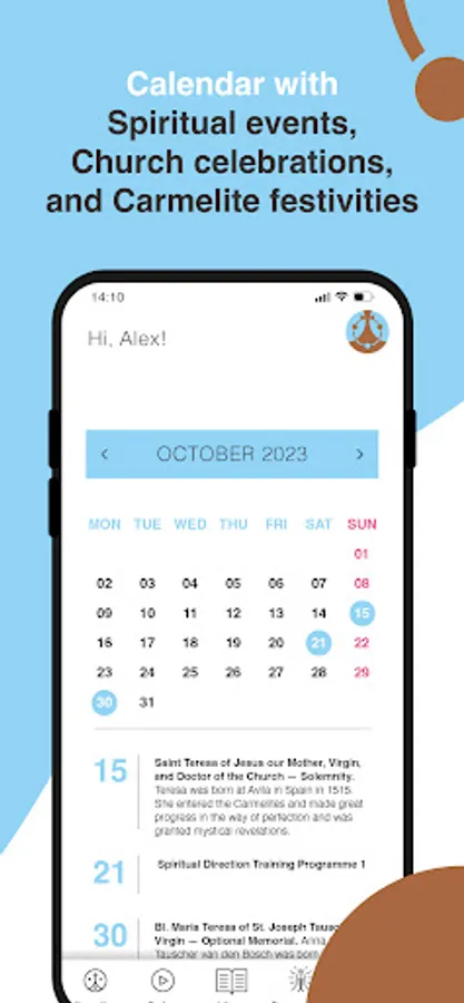 Calendar with spiritual events
