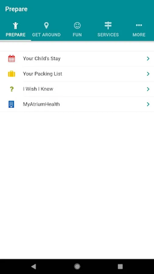 - Navigation: Parking and local lodging options, as well as a link to the Atrium Health Directions app, which provides turn-by-turn directions within Levine Children’s Hospital