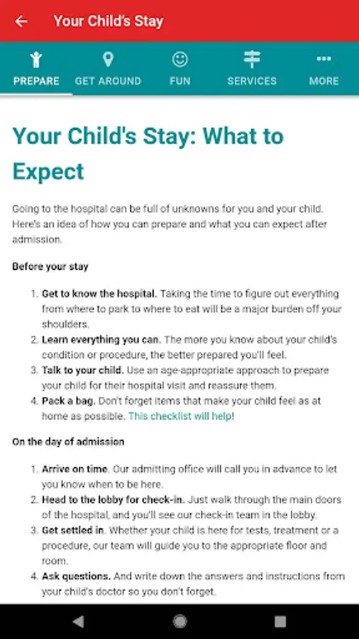 Help and support from Levine Children’s Hospital is available. Our app helps patients and their families prepare for their visit, and make their stay more comfortable.