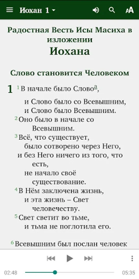 The Gospel of John from the Священное Писание - Восточный перевод (http://www.slovocars.org/en/index.php) is a Russian-language translation of the Gospel of John designed for Central Asians. The Восточный перевод is also known as “CARS” (Central Asian Russian Scriptures) or ERT (Eastern Russian Translation).