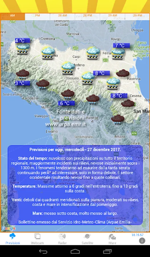 - forecasts up to 3 days. published by Hydro-Meteo-Climate Arpae Service;