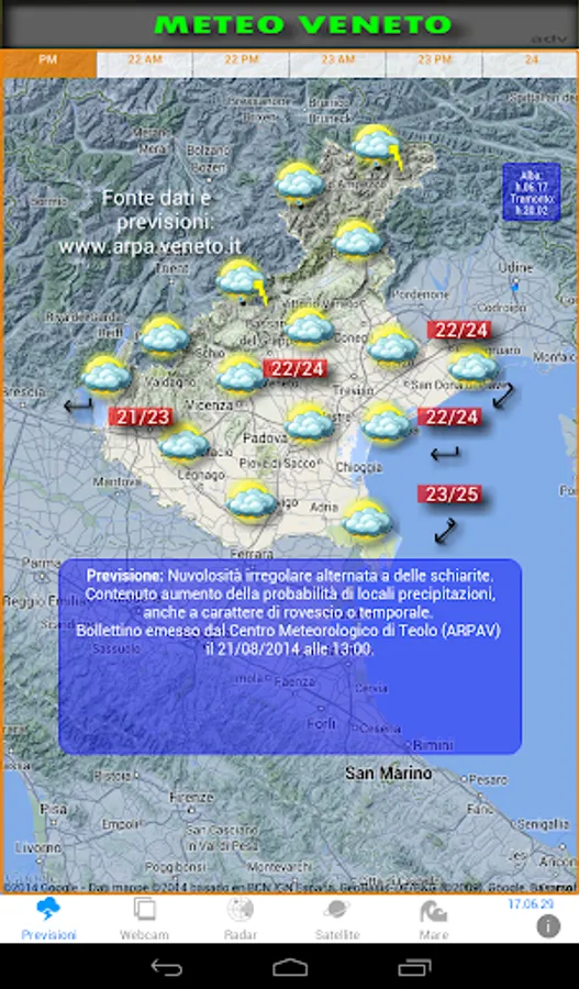 - Forecasts up to 4 days. published by the Regional Meteorological Centre of Teolo (ARPAV);