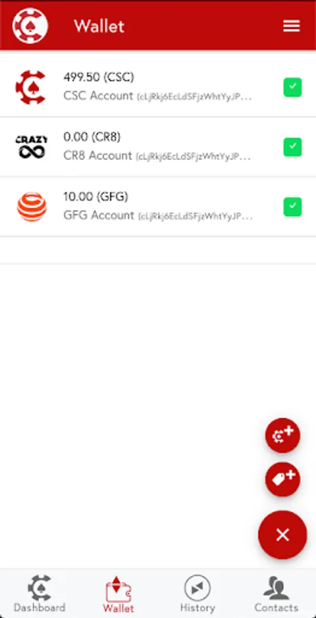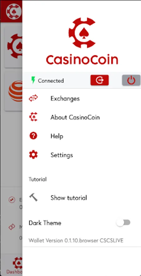 Mobile wallet for CasinoCoin and Tokens available on the CasinoCoin ledger