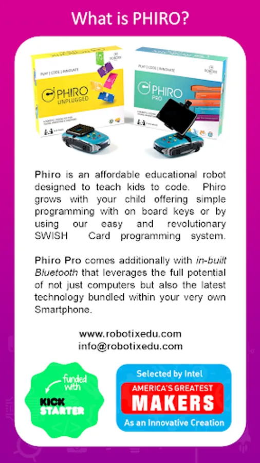 To use Phiro Play, you need a Phiro Pro robot. To learn more about Phiro, please visit Phiro's website: http://catrob.at/Phiro