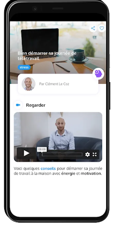 Through multiple video and audio supports available to all your employees in hybrid work (teleworking and on-site work), we support you both on mental and physical health through more than 25 themes that affect their well-being. personnel such as nutrition, the prevention of musculoskeletal disorders, stress management, physical fitness, physiotherapy or the balance between professional and personal life.