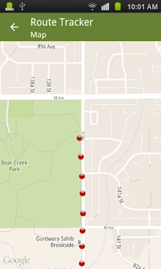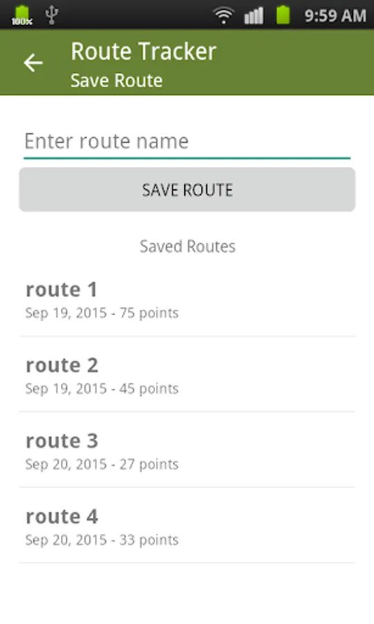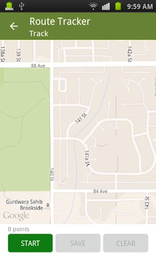 'Route Tracker' lets you record your route while biking, jogging or walking. While recording, the app marks points on a map at a fixed interval of time. The interval can be adjusted in the settings screen. Once you've finished recording you can save the route and view it again at a later time. You can also save your routes as GPX files. GPX is an open format for saving GPS data.