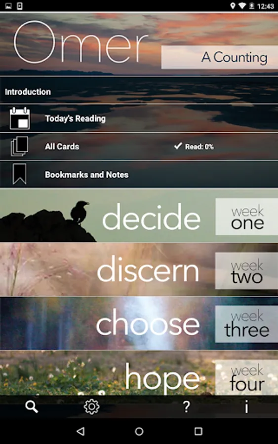This unique and beautiful app offers an inspirational reading for each day of the Omer.