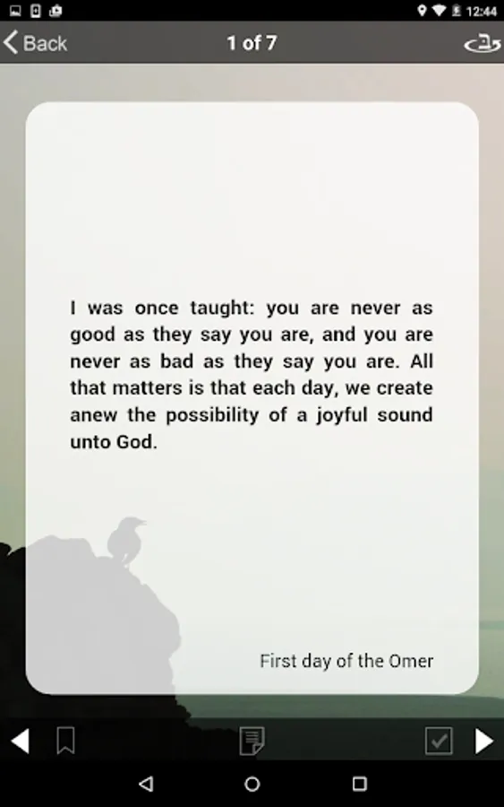 "Daily contemplation and consideration enable us to focus our attention and heighten our awareness toward the importance and sacred energy of our lives. For forty-nine days, or seven weeks, we take on a discipline and an obligation to mindfully enter the day, to be aware of its potential power to matter, to make a difference, to make it count for something.