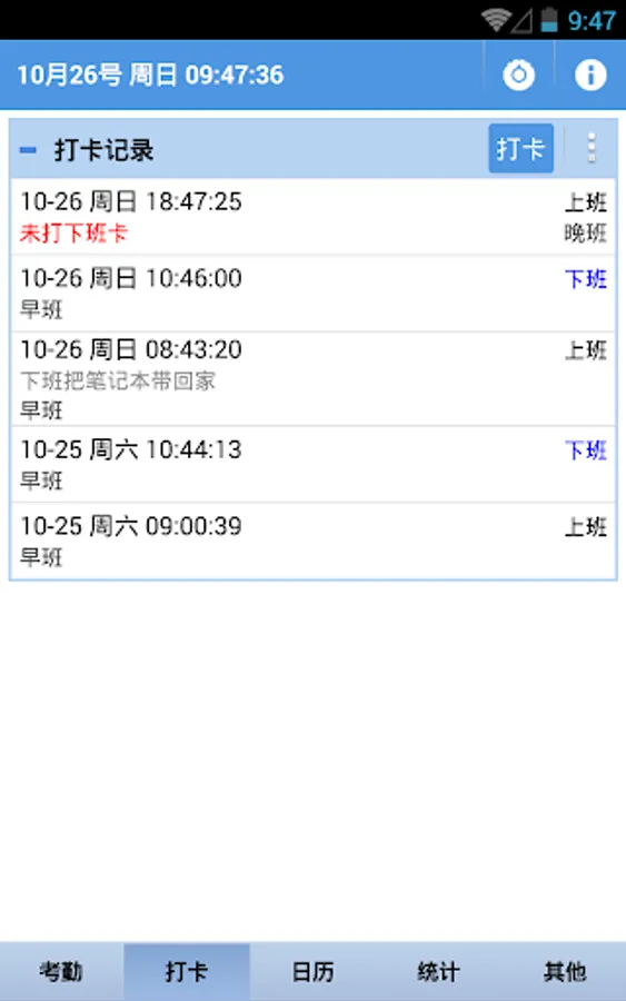 Attendance App class attendance assistant is working with the best, remember overtime, remember punch time, wages and working hours statistics, support for cloud backup, do not worry about the loss of time and attendance data