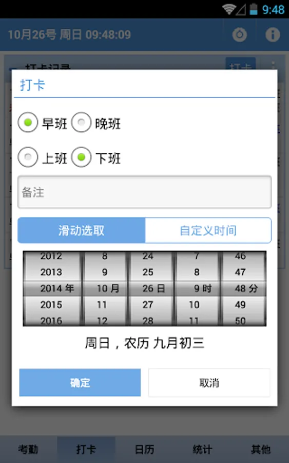[] Record attendance record attendance, vacation information, such as overtime, leave, annual leave, etc.