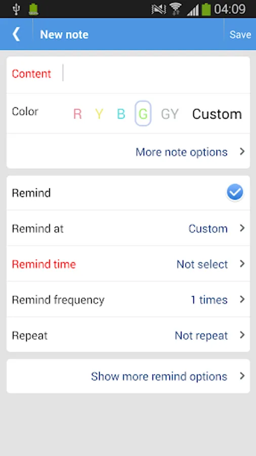 Supports remind(daily repeat or weekly repeat), you can set login password, supports backup and restore, notes can be categoried and color-coded.