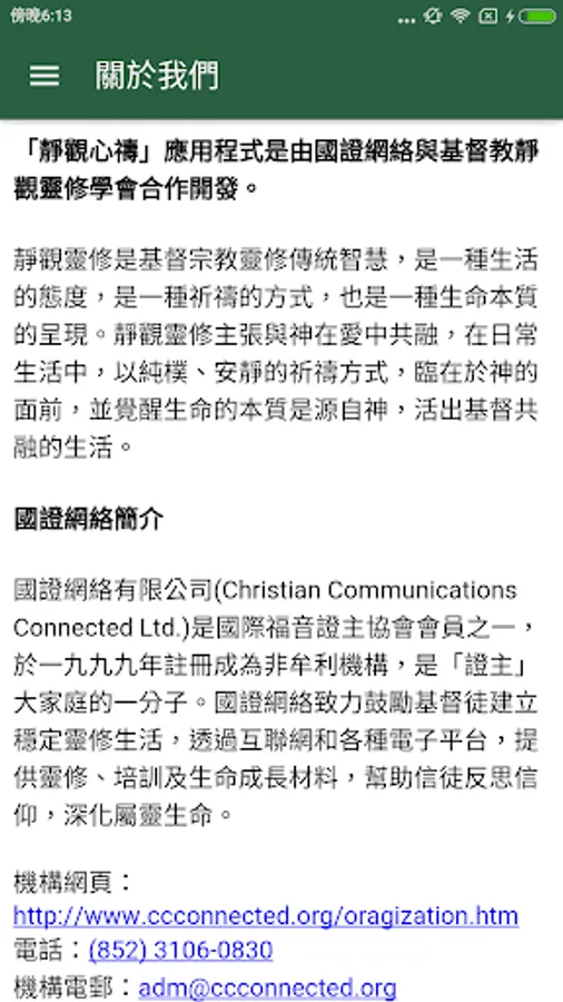 「靜觀心禱」應用程式是由國證網絡(ccfellow)與基督教靜觀靈修學會合作開發。