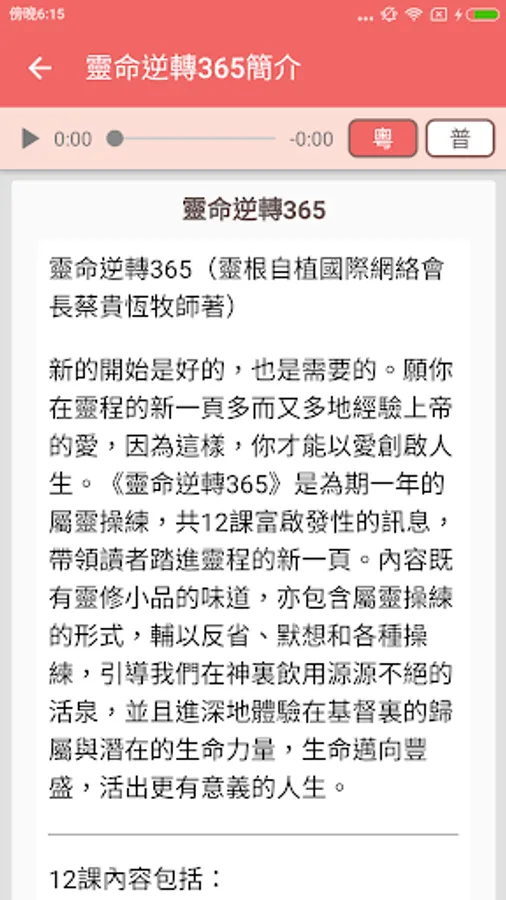 The "Spiritual Reversal 365" app was jointly developed by China Securities Network (ccfellow) and Linggen Self-planting International Network, and was written by Pastor Cai Guiheng, the president of Linggen Self-planting International Network.