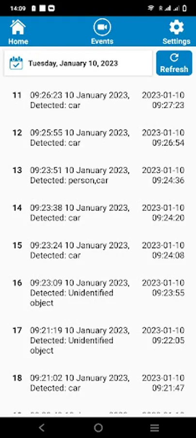 2. Easy Event Viewing: The Events section of the app displays events as text descriptions along with corresponding video clips for easy viewing. This helps you quickly identify which events you need to investigate.