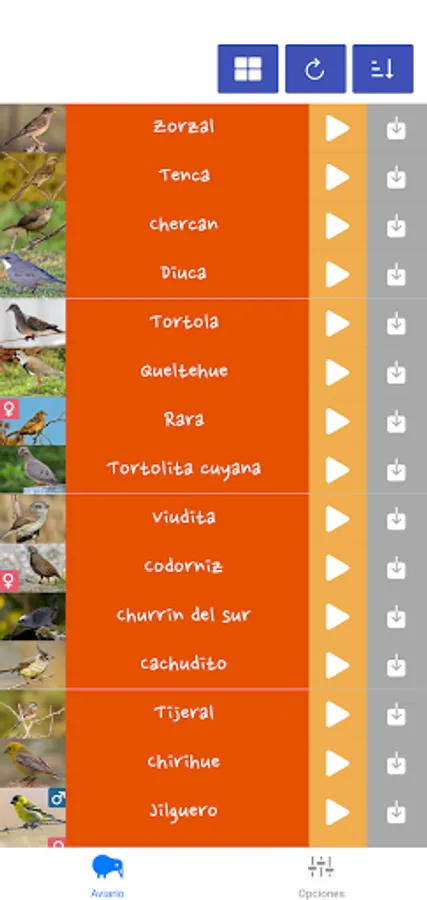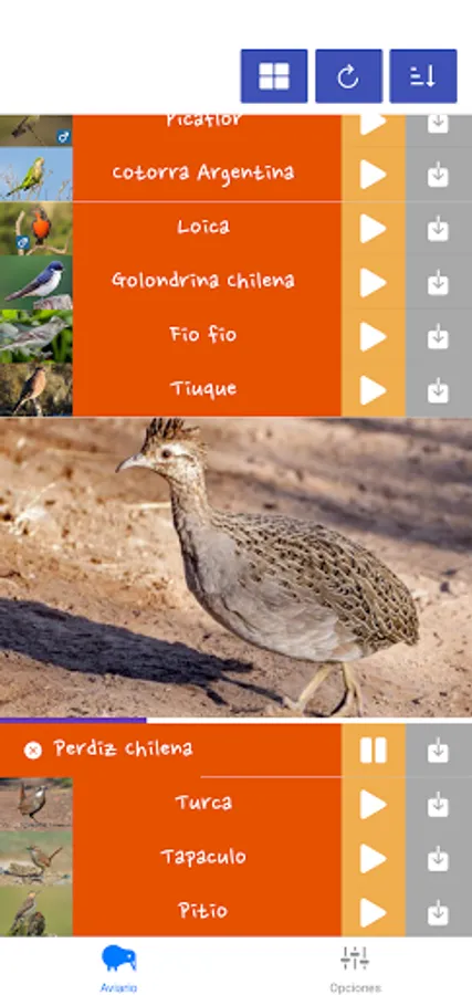 Play all the sounds of the bird online and download your favorites to listen to them offline.