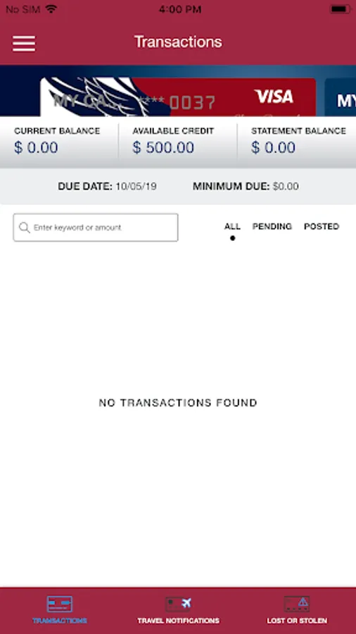 • View recent and pending transactions.