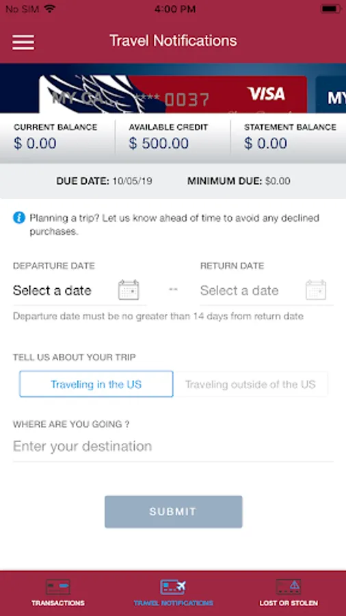 • Set up travel notification.