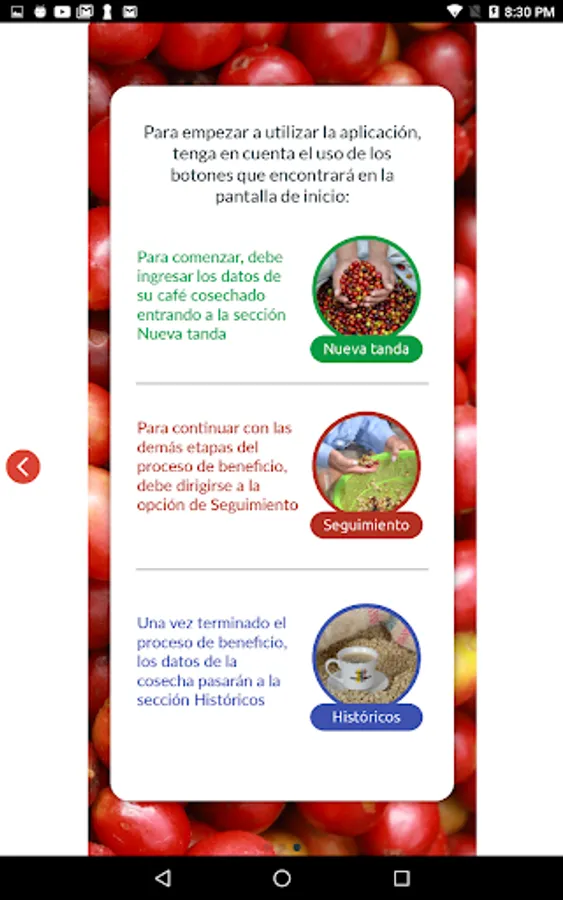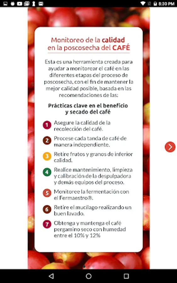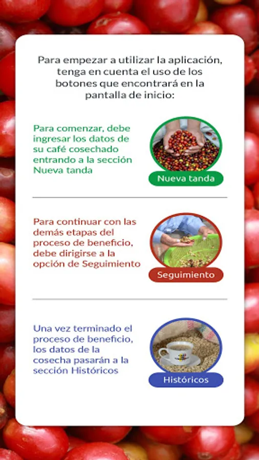 This is a tool created to help monitor coffee in the different stages of the post-harvest process, in order to maintain the best possible quality, based on the recommendations of the Key Practices in the processing and drying of coffee.